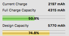 If you use an app like the free "Coconut Battery" on it, what does it show about the charging capacity of the battery?