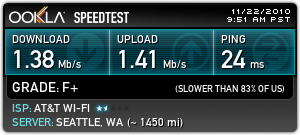 Internet speed test from Speedmatters.org, the same utility I used last night, and my download speed jumped up to 21 Mbps.