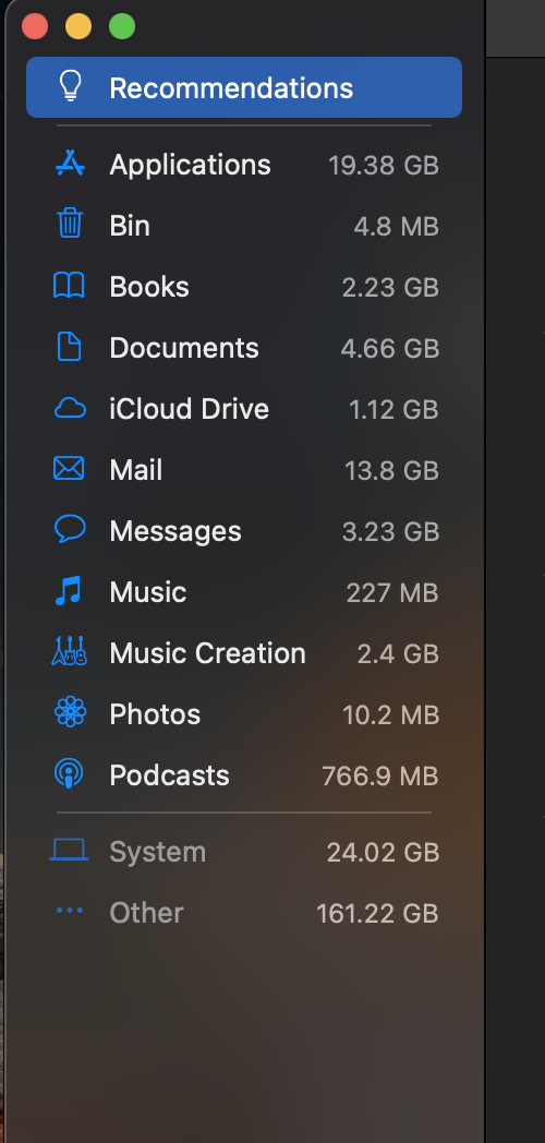 I'm trying to find out what is taking up all the space on my 2020 MacBook Air M1.