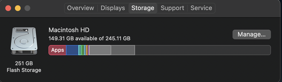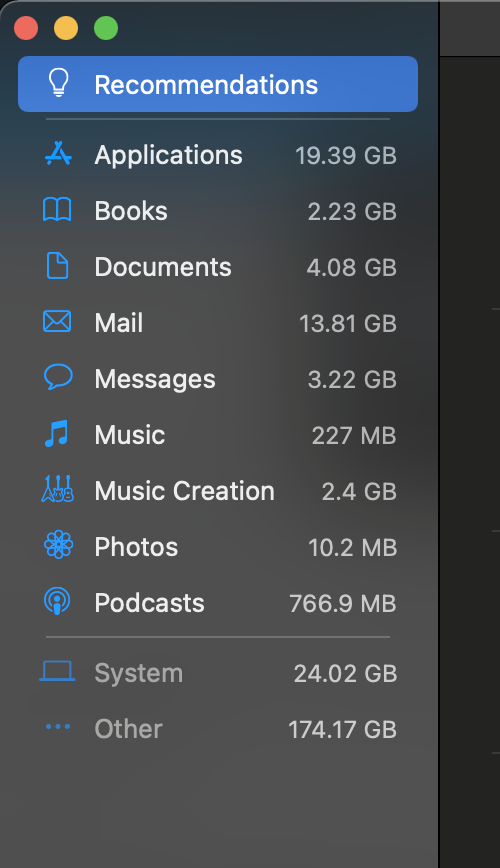 Today that free space has now reduced to just 636MB, and the 'Other' has jumped up to 174GB.
