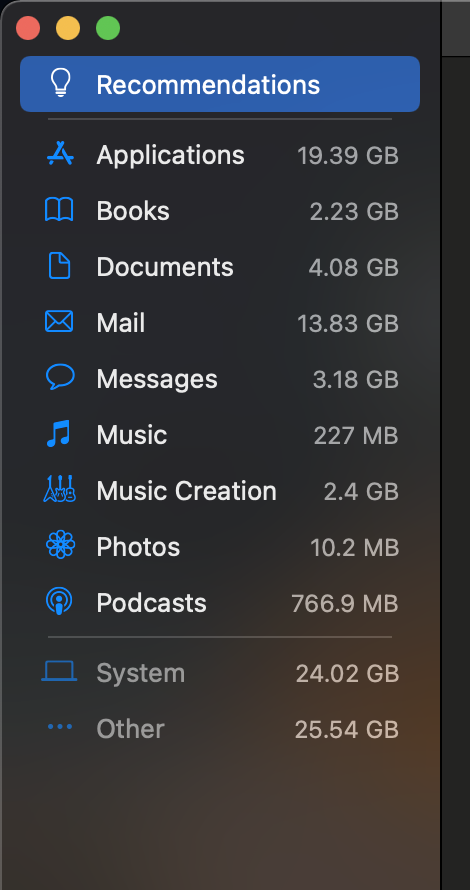 Mail popped up a message saying it can lo longer function as there is not enough space, and promptly closed itself down.