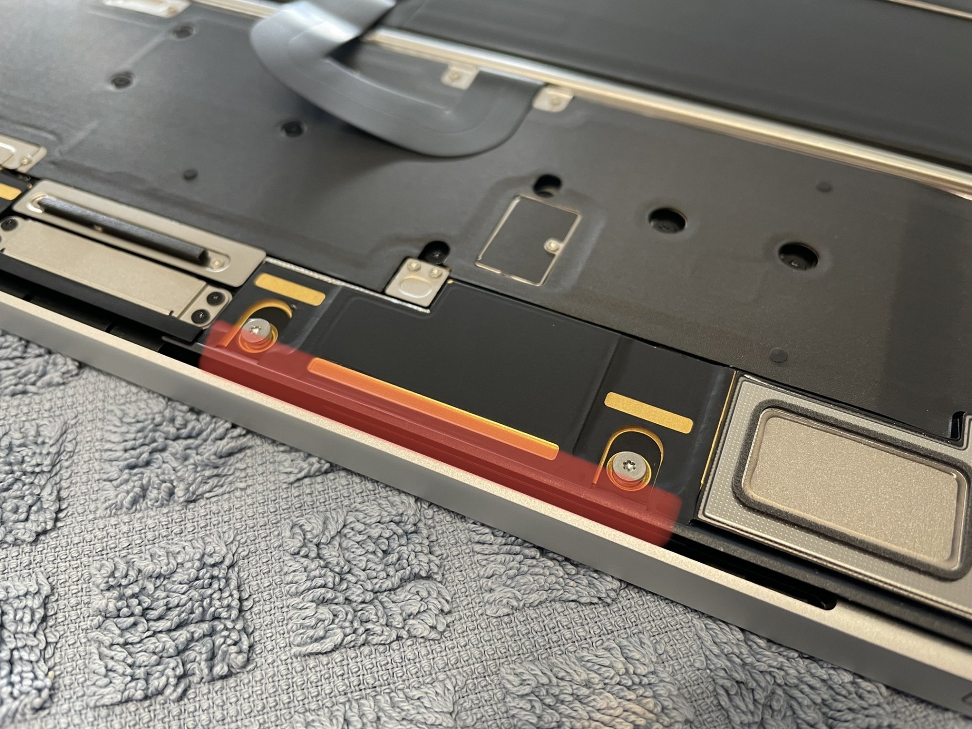 This is pretty hilarious if true. Not sure I've ever seen Apple's famed industrial engineering actually misjudge the sizes of internal components relative to the fitment of the casings they are to be placed within...Out of interest I took the bottom plate off.