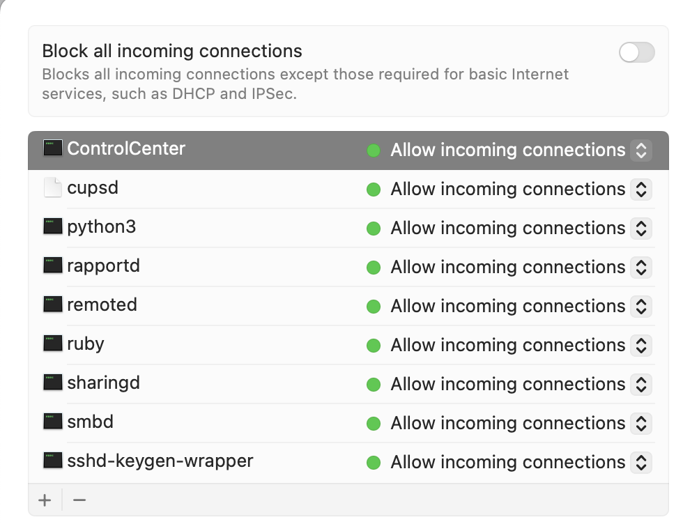 I realized today that the MacOS Firewall was turned off and probable has been for a long time.