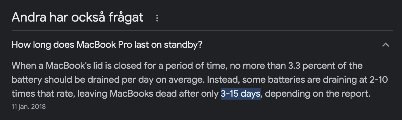 I found some data that says Macbook should last a lot longer on standby, several days and weeks (3-15 days).