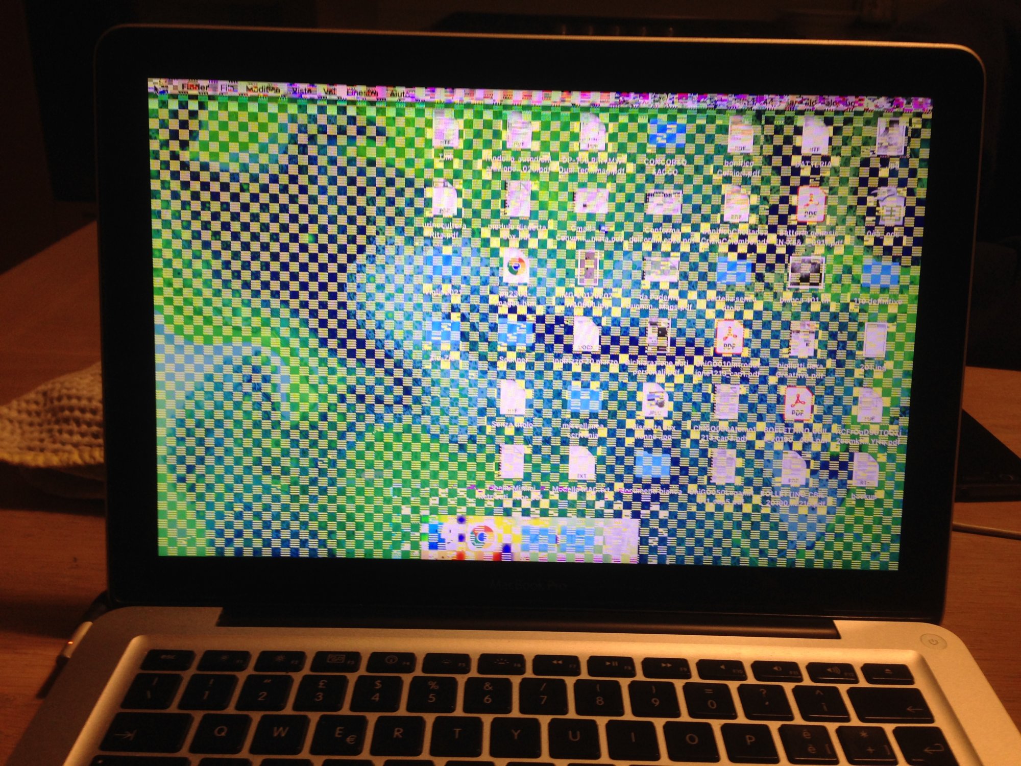 During the first half boot the screen is fine , the second half and the following is with square interfearing,