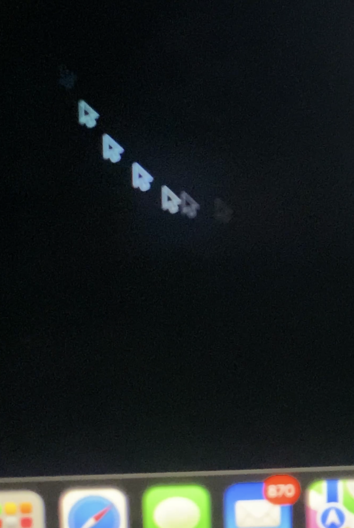 (all attached photos show cursors at the same brightness and with both true tone and night shift turned on bc only then it is noticable and i can only see that when it is in motion)