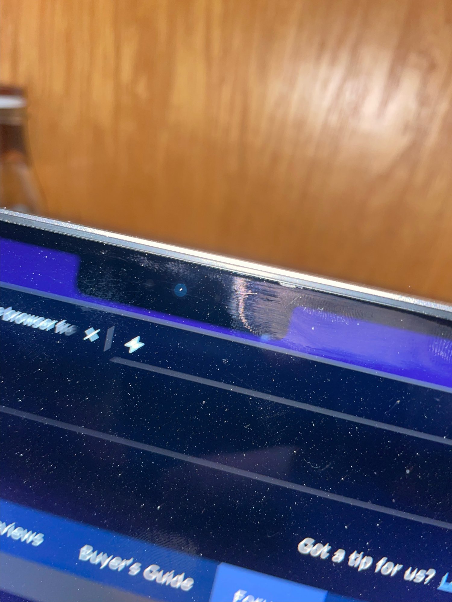 There is something wrong happening close to the top-left screen bezel. The defect is getting worse as time goes by. See the picture attached.