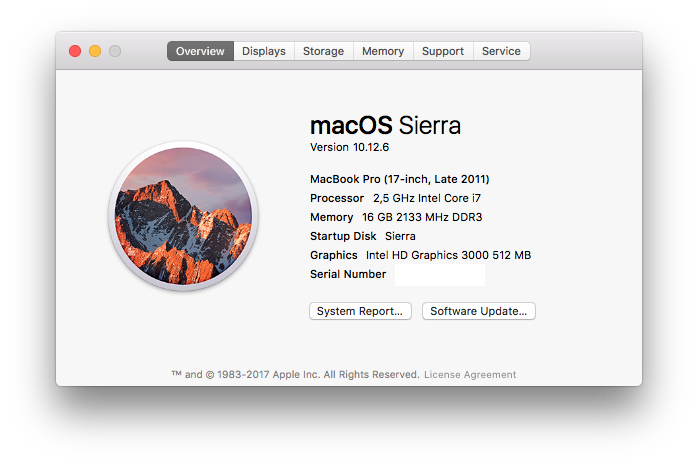 Anyway, here's the story... First, the configuration. It's a MacBook Pro late 2011, 17", quad core 2.5ghz, with the AMD Radeon HD6770 and Intel graphics 3000 graphics card, running El Capitan, featuring a data doubler with a HD inside, and a Samsung 840 pro 256GB SSD where the HD used to be. I had 16GB ram but one of the first things I did when I started to troubleshoot was revert to the original 4GB original apple ram that came with the computer.