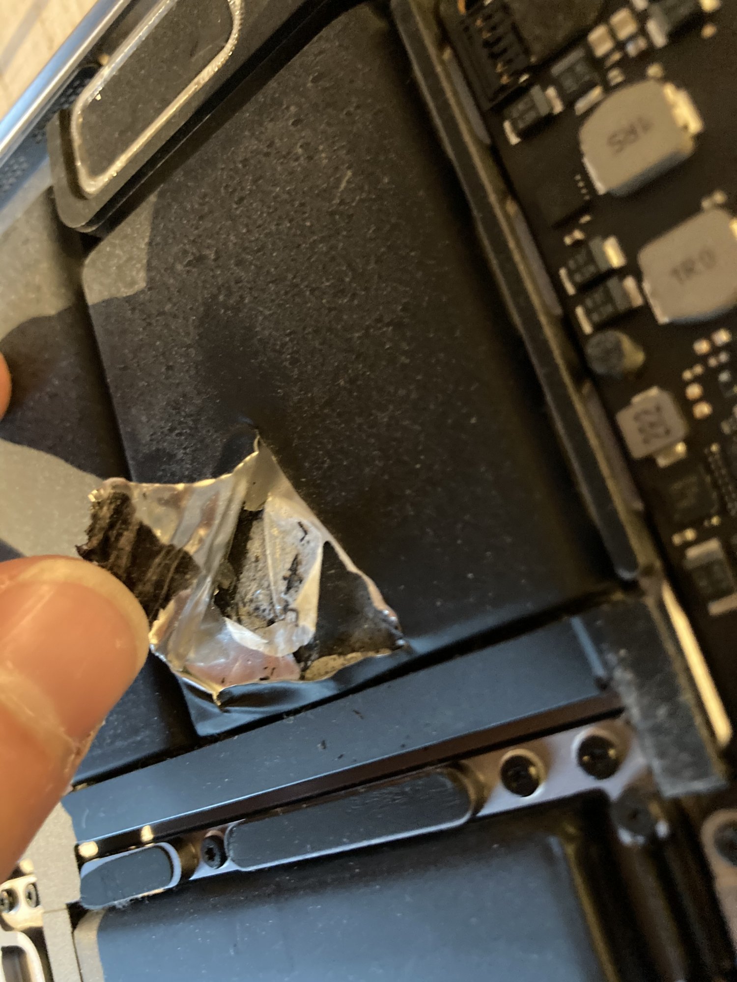 Hi everyone, today I wanted to clean the fans of my mbp and while I took the backplate off I think I damaged the protective layer (that covers a the metal?) of one of interior components (see pictures). I put it back together and it works fine but should I worry about damage that could unfold in the long term? Does anyone know what the damage component is? I am a bit worried and thankful for any answers!