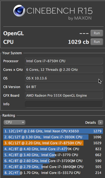 Here's my Cinebench. I didn't bother with temps, but I have the base 2.2MBP. Let me add that I did NOT upgrade to Mojave.