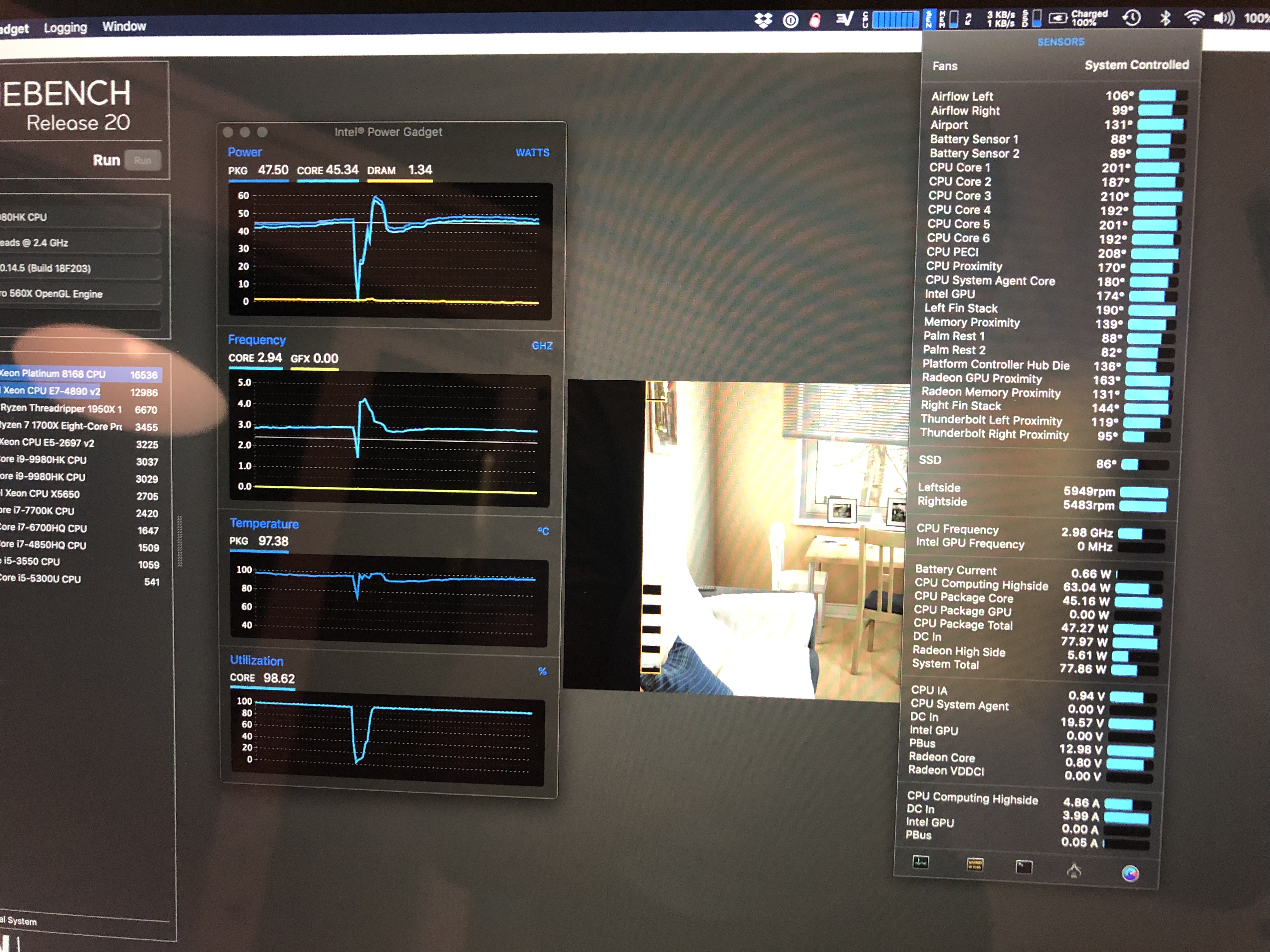 Can you make same screenshot as @RumorConsumer did on his 2.4 with iStatMenu showing all sensors and power gadget trends while running CB20? That 2.3 seems to consistently 10% slower than 2.4 and they really shouldn't if operating at the same voltage.Ran Cinebench and got the following