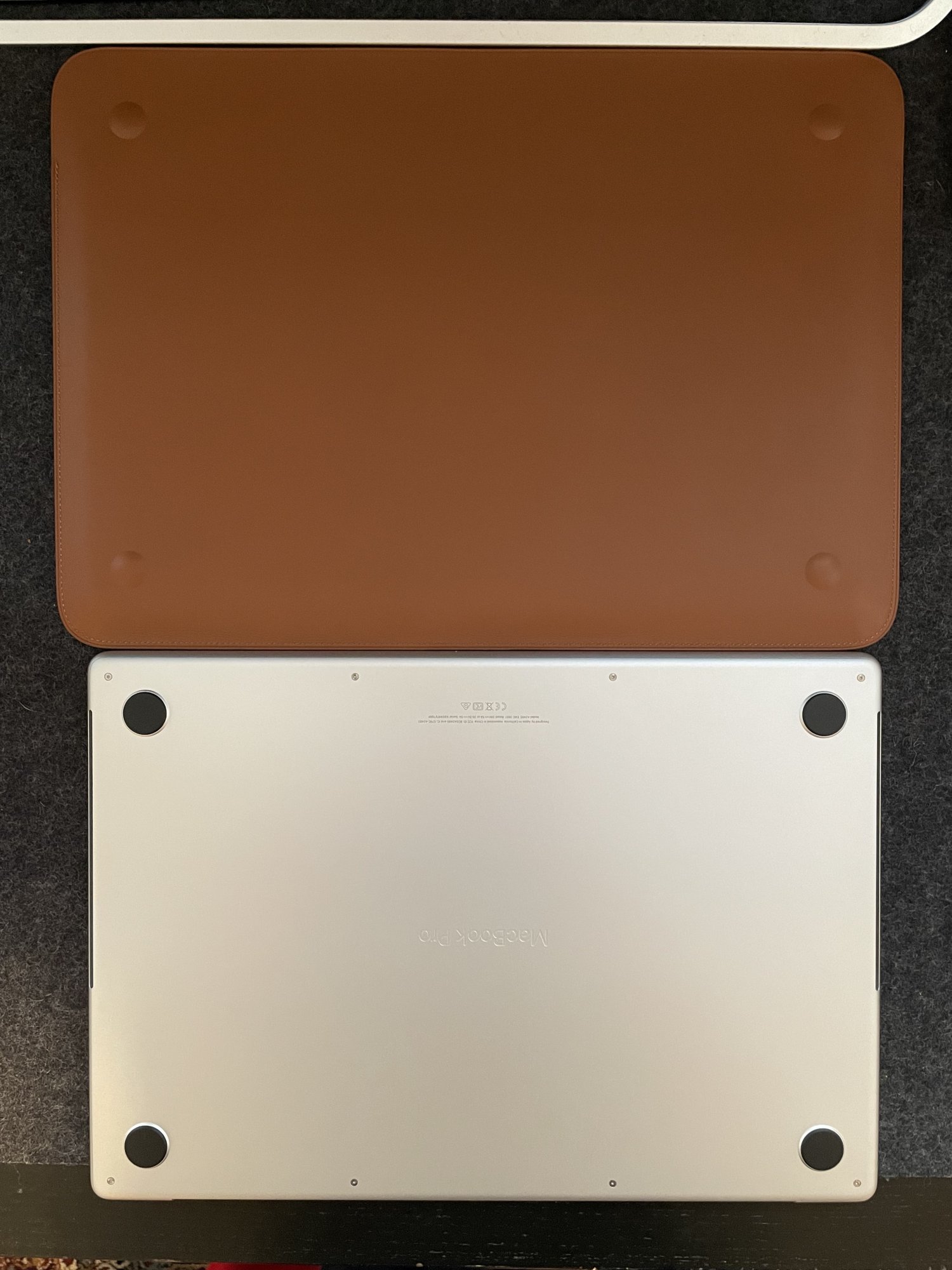 Not exactly; the feet of the new MBPs are quite a bit larger than the 2019 feet. The alignment is almost there but the feet wouldn't fit in regardless because of their larger size. In any case, since the new MBP is thicker, the sleeve still fits nice and snug.Do the fit of the new 2021 MBP fit at the locations of the bumps of the 2019 sleeve?