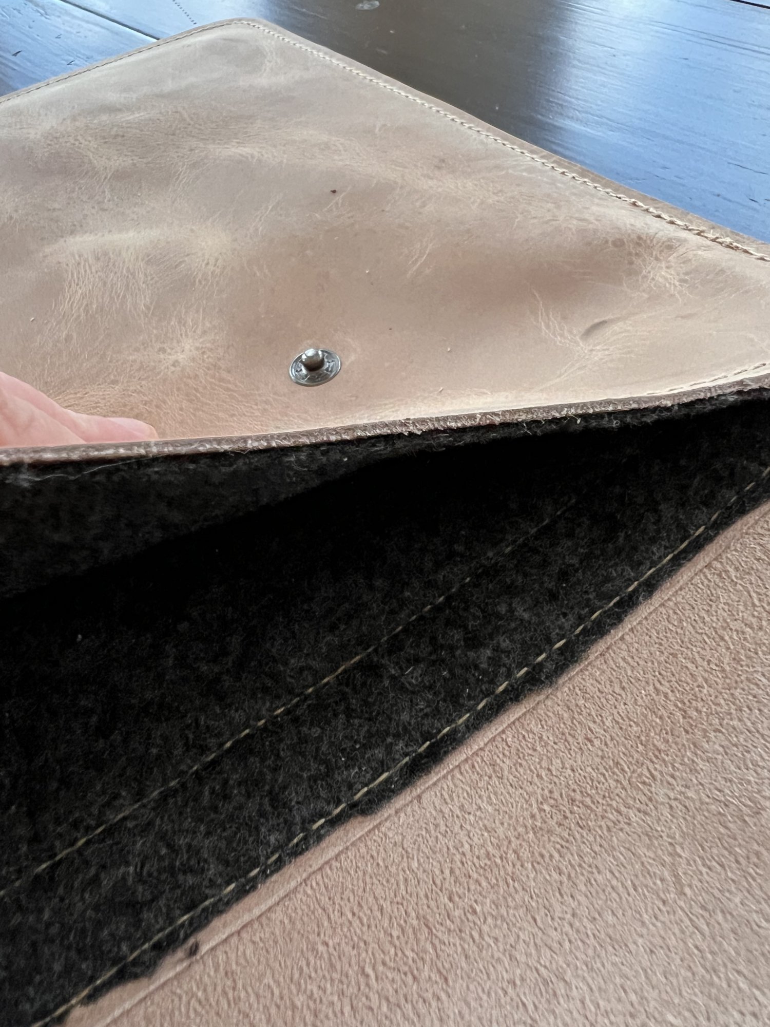 I’ve seen a few people ask if the buttons rub against the MBP and I knew Mission Leather had a liner but should express better that their liner makes it so there is no rubbing as you can see in the pics.