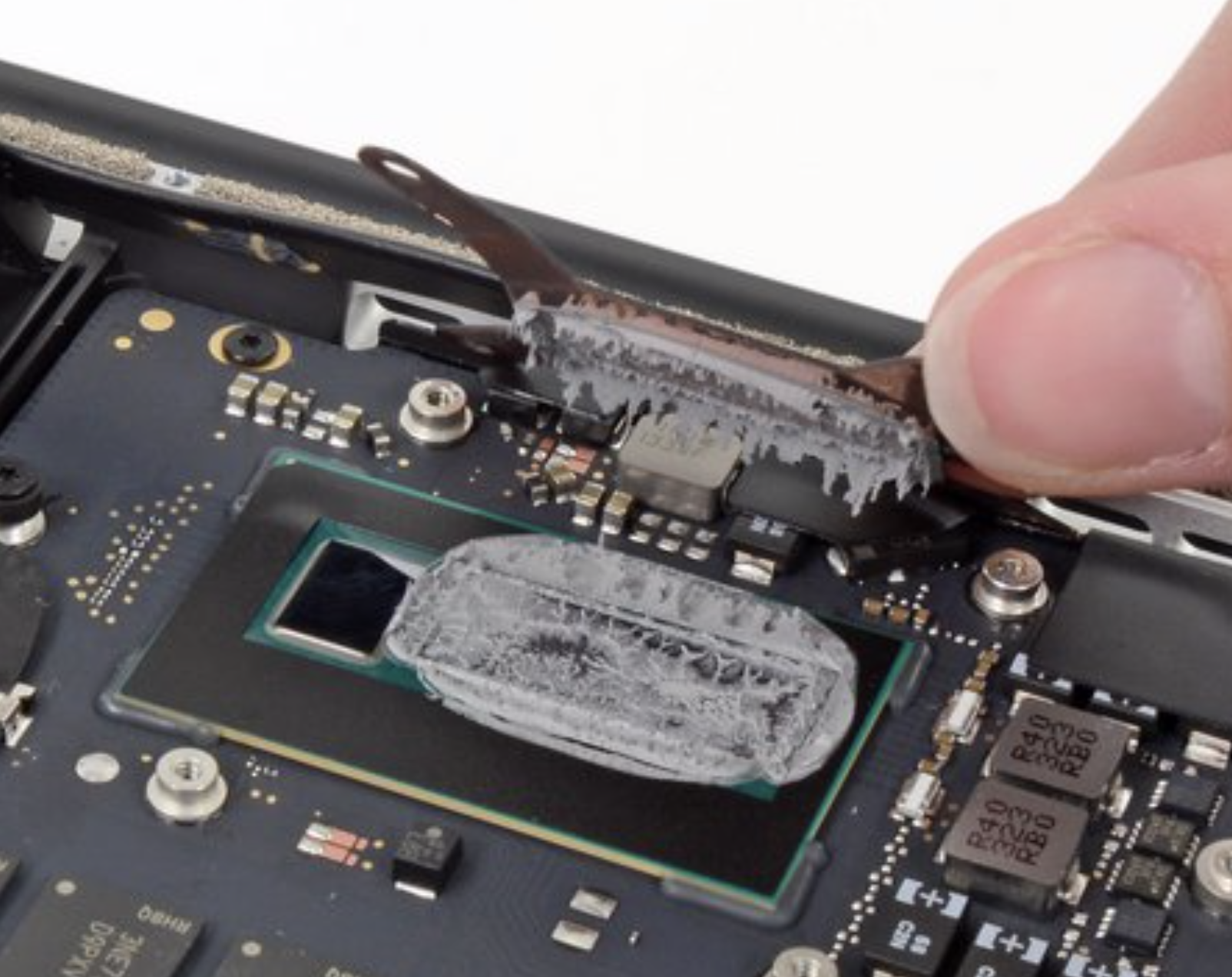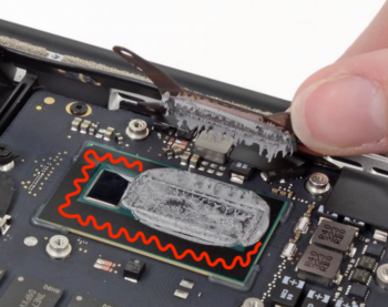 I removed the black adhesive on the CPU under which there was still some old thermal paste left behind.