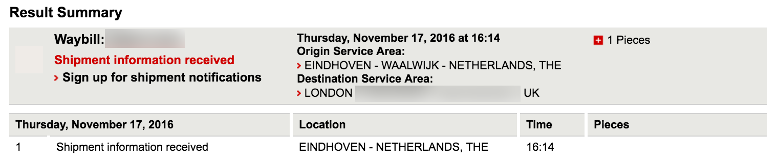 1 Shipment picked up EINDHOVEN - NETHERLANDS, THE 13:23