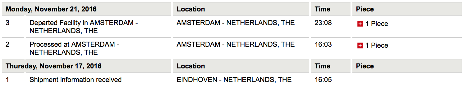 No, mine is processed in AMS.Last update was last Thursday the 17th where it changed to shipped (delivery 23rd), got my tracking number, which stayed since in this "Shipping information received" state with DHL...