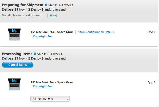 That's what i mean. Cramer and I won't get it today. It will be tomorrow for sure. While everybody is enjoying his new MacBook, we'll be stuck in the waiting game. :-(Mine has "arrived in delivery centre"