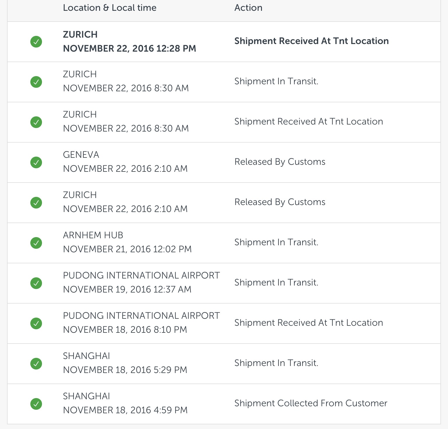 As per the screenshot shared from another user located in CH (from Sep, Apple Watch) this step (2nd transit and 2nd "received at TNT location") was to be expected so, going by that, it should actually be a good sign