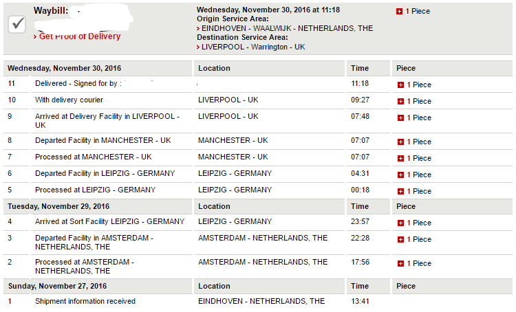 Monday large part of the day : shipment dispatched