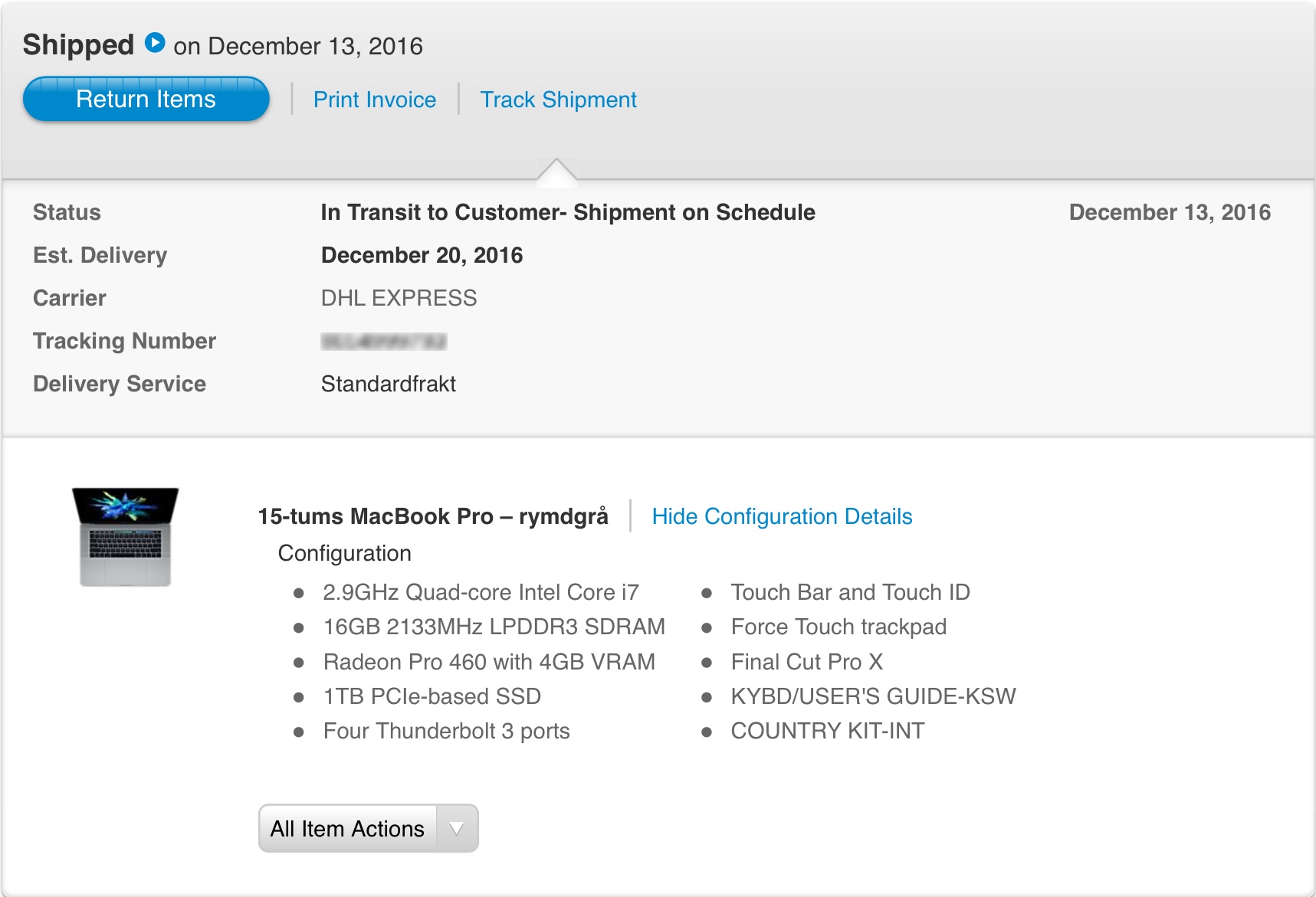 Ordered: 14 November | 2.7ghz, 460, 512GB