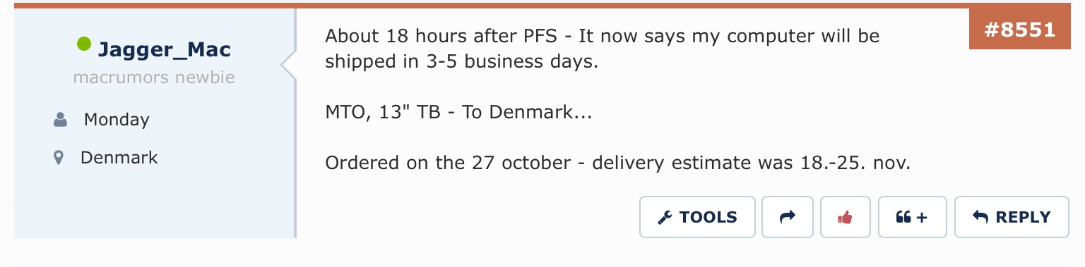 Long time follower of this thread. I am another in the 17-24 group (ordered just after keynote) at PFD, to be shipped to London.