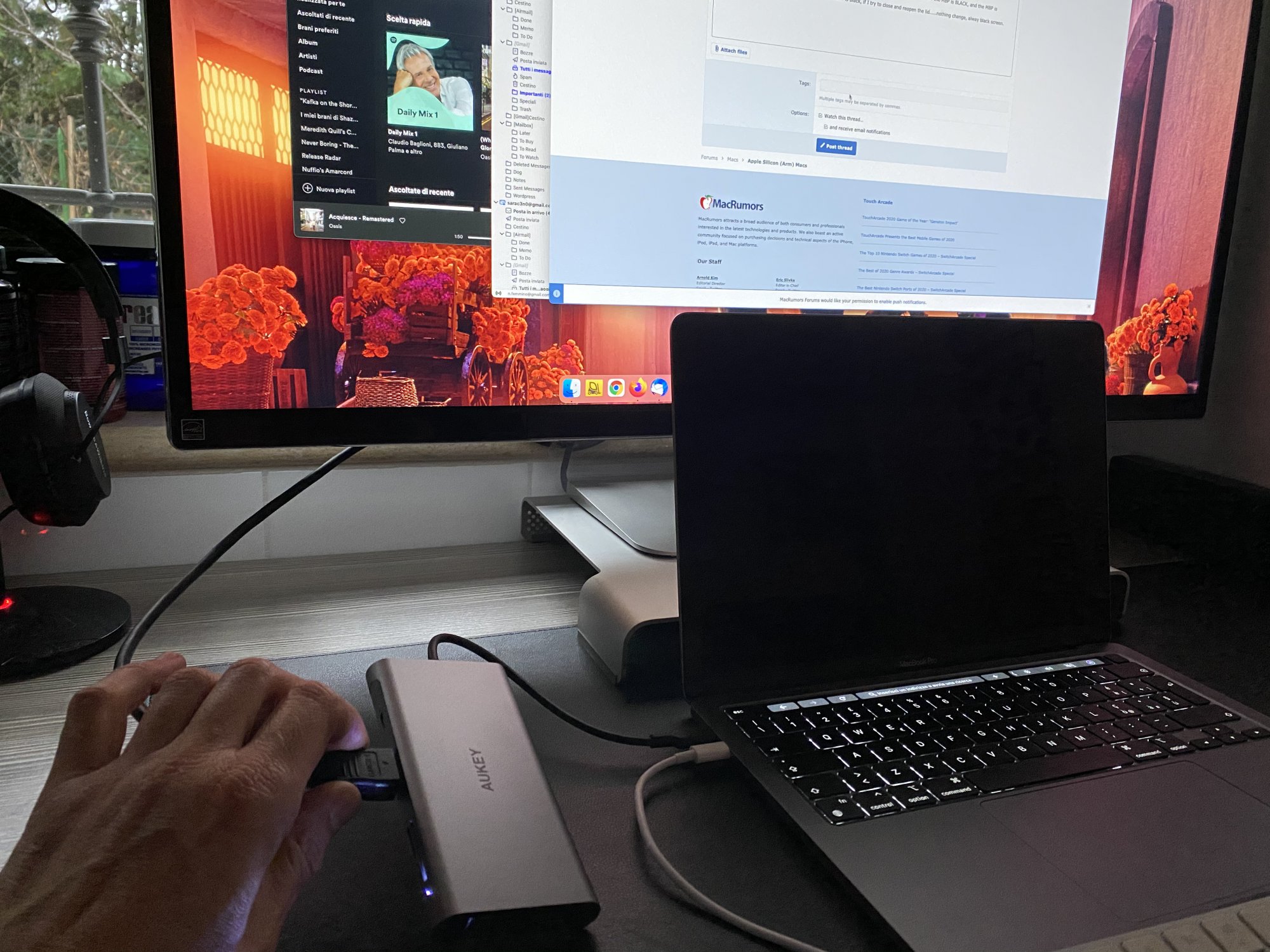 I plug my MBP M1 into my monitor with an hub, the monitor is ok, everything else works, screen on the MBP is BLACK, and the MBP is charging.
