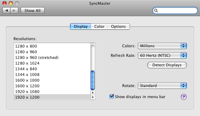 Two days ago I bought a TV 32 inch Full HD LCD Samsung LN32A550 in which I am using with my MacBook Pro, but can not do the TV using the 1080p resolution, the TV only supports up to 1080i. I of how to enable this resolution in my MacBook Pro and if it is compatible with that resolution?