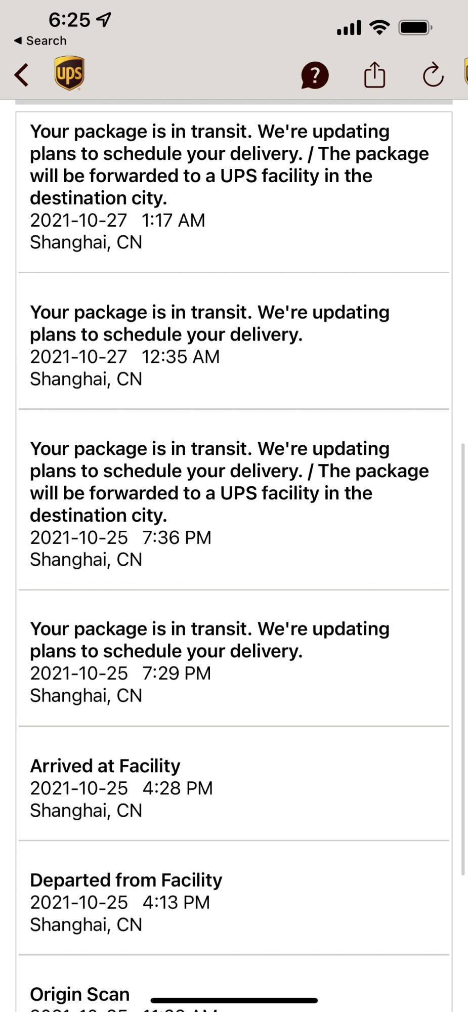 Same boat as you with the same last scan timestamp. I've heard others who ordered after us have had their laptop shipped from Shanghai.