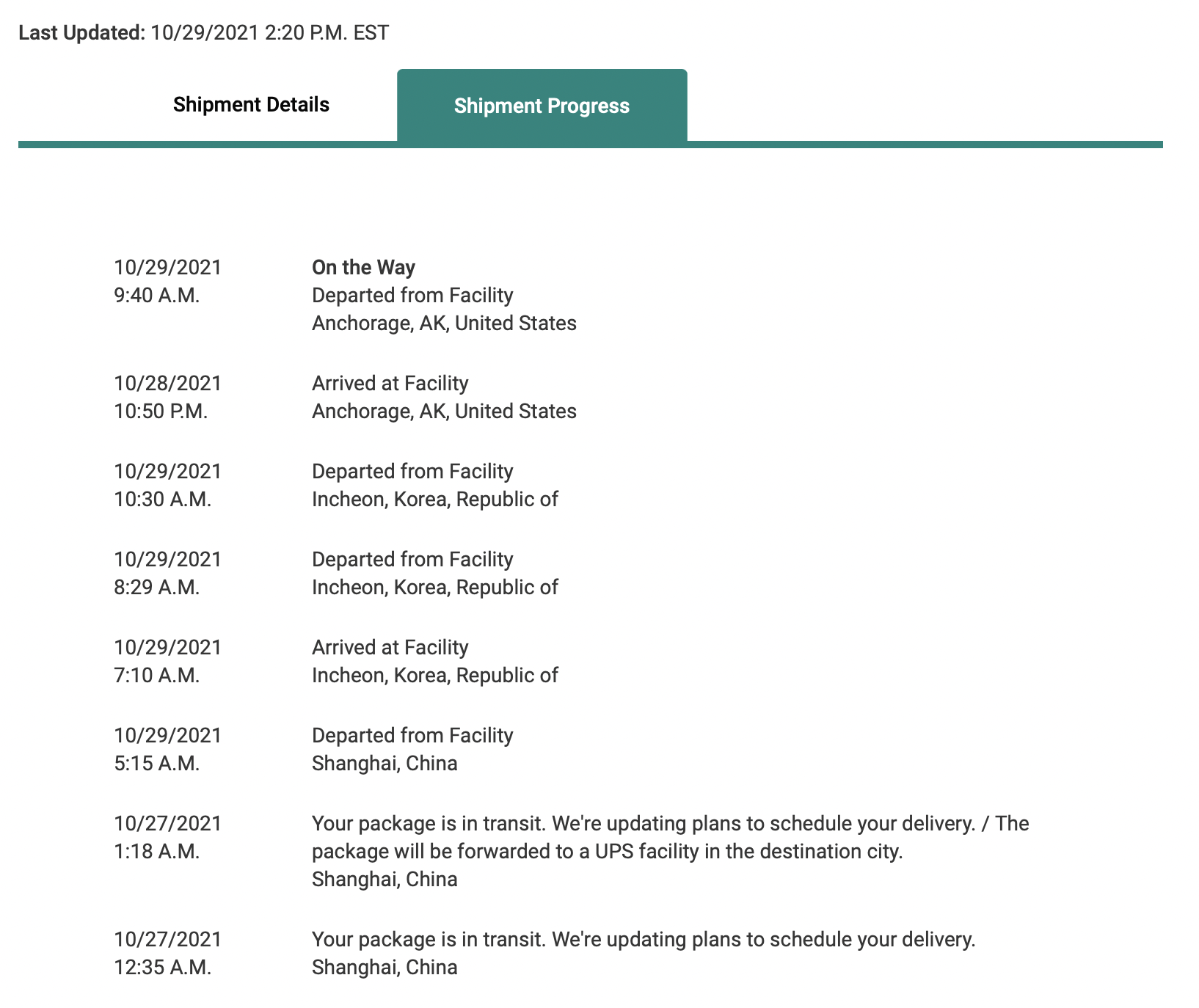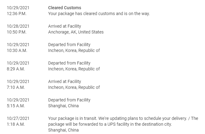 No departure scan -- may show up later with all the UPS screwiness.Oh nice! Did you get an Departure scan from Anchorage? I didn't - so I assume mine isn't on 5X91.