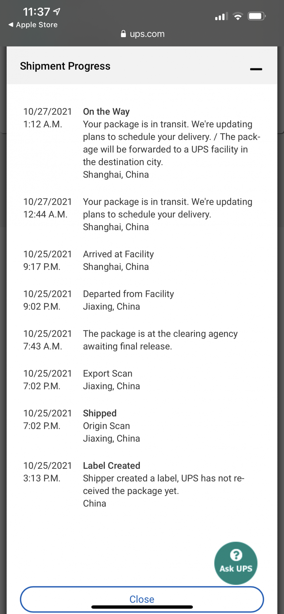 Dang, I was wondering why my AW7 is just chilling in Shanghai as well.That explains why my shipment has been sitting in Shanghai for 2.5 days with it only saying “We are updating plans for your delivery” and other weird and vague tracking status notes such as “the package will be sent to your destination city.”