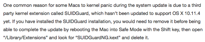 [doublepost=1490263122][/doublepost]Before this happened, did you have SUIDGuard installed on your Mac ?