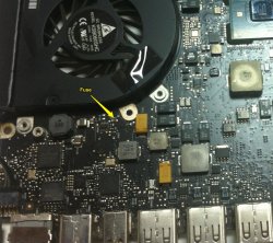 Stupidly tried to bridge the fuse with a piece of wire. Turned on macbook, notices sparkles and smoke from LVDS connector. Did only more damage to cable and socket connector.
