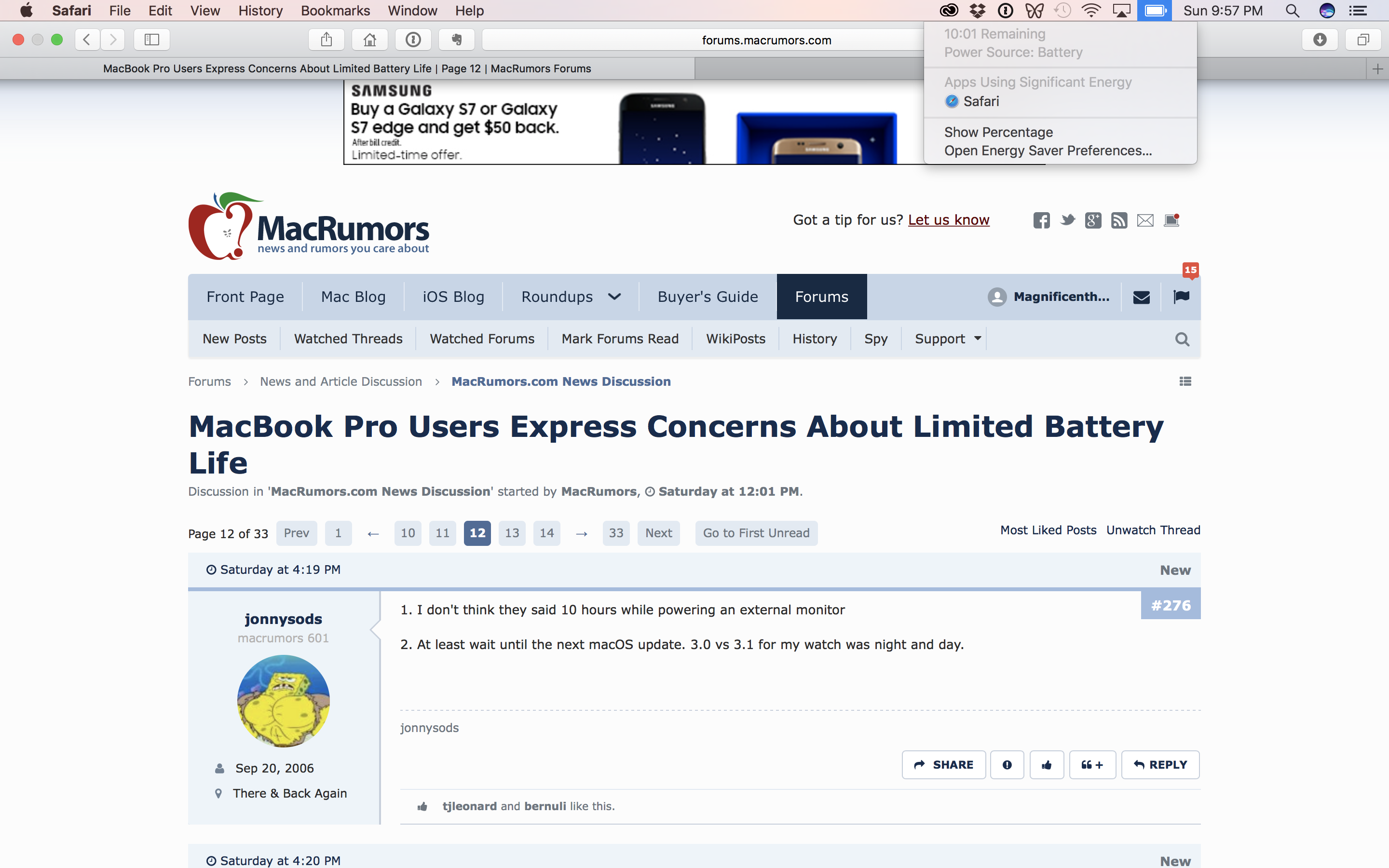 2. "MacRumors forum member Scott claimed he experienced a 5 percentage point drop in battery life, from 10% to 5%, in just 12 minutes. Google Chrome, a known battery hog, was listed as the only app drawing significant power."