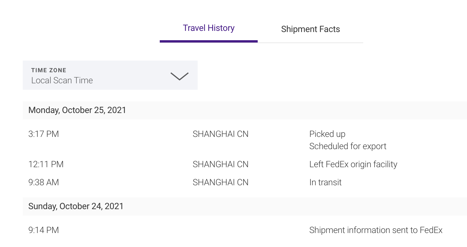 "Import Scan" today. Get yourself ready to obtain a "Departure Scan, stamp. Hope you travel safe. Keep us posted.