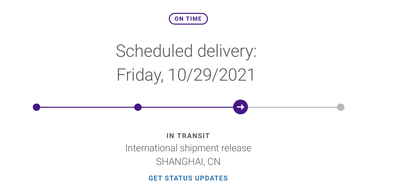 On the same boat as other peoole, was checking UPS but it’s coming from FedEx. Original delivery estimate was Nov. 3 - 5, now shows Friday Oct. 29th, which I’m fine with that, if it comes sooner, that’ll be sweet.
