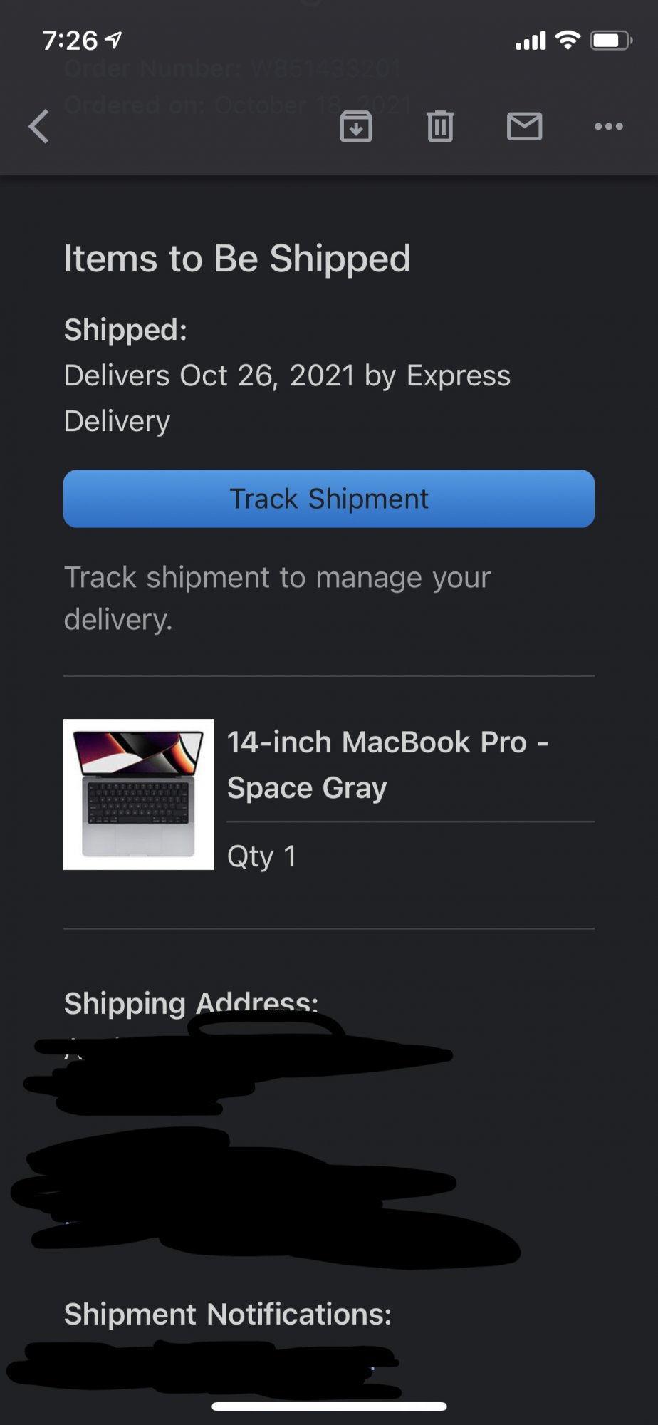 My base 16 pro i have a UPS shipping all it says is label createdIt seems like I don’t think any of the base 💻 16” models for shipment notification. Am I wrong?