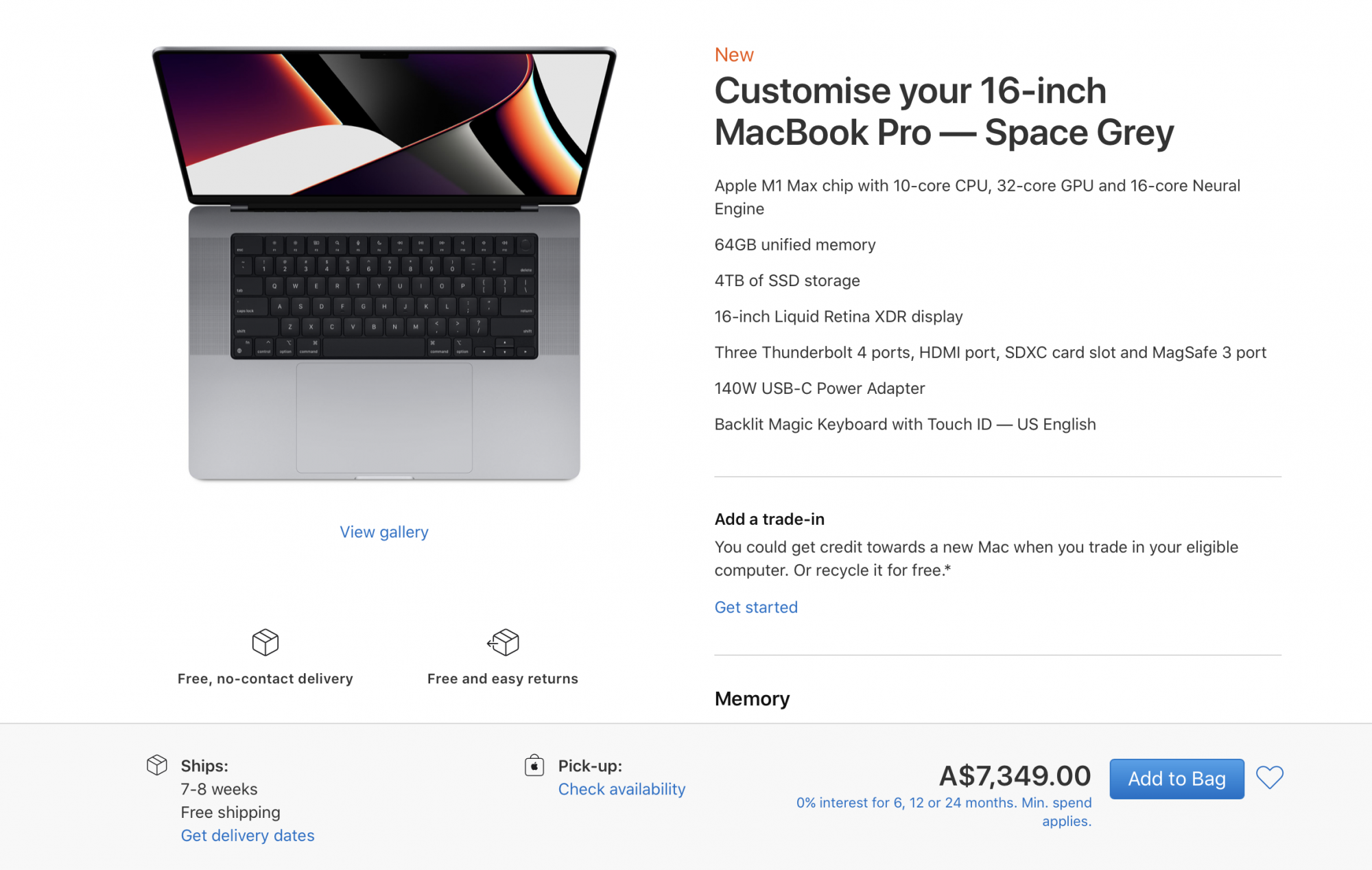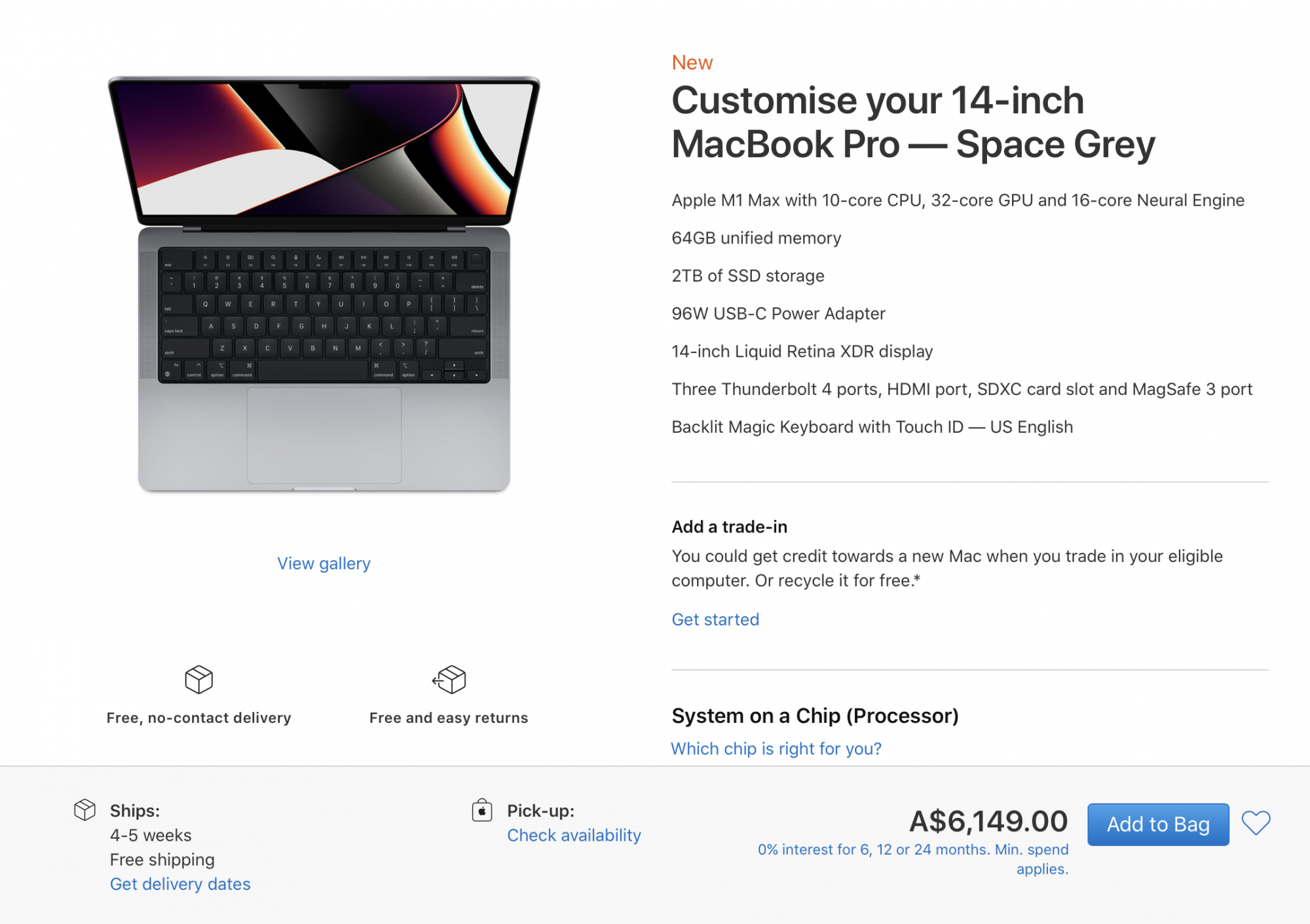 Good catch - yup, looks like those are the 'Ultimate' configs to be stocked for this release. Checked a bunch of other combinations and nothing else came up.Checked the Australian Apple website and it seems that they also have a decent stock of 14'' M1 Max MPB with 64GB of memory and 2TB of storage and 16'' M1 Max MPB with 64GB of memory and 4TB of storage. Maybe these are the BTO configurations they're shipping to stores everywhere.