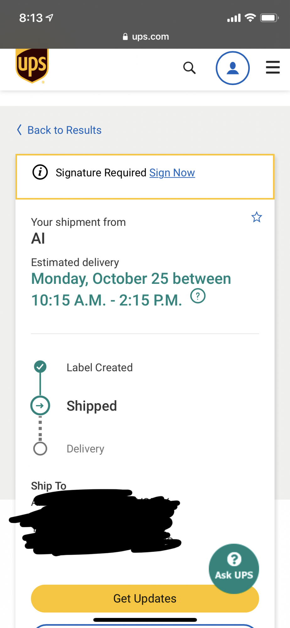 My MacBook Pro is finally on the move! ETA: tomorrow, 11am - 3pm (ignore the date, I think it is a glitch)!