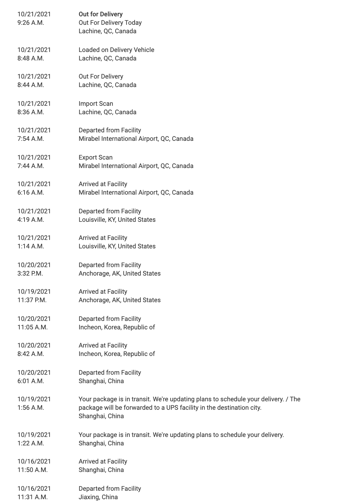 Same here. However my Applecare agreement was sent to me showing it will expire Oct 27, 2024Anyone see any movement on FedEx? Mine is still stuck at the 11:00pm scan in Shanghai yesterday. For some reason, it looks like the master tracking also has a 5:07am scan in Shanghai after that, but mine doesn’t.