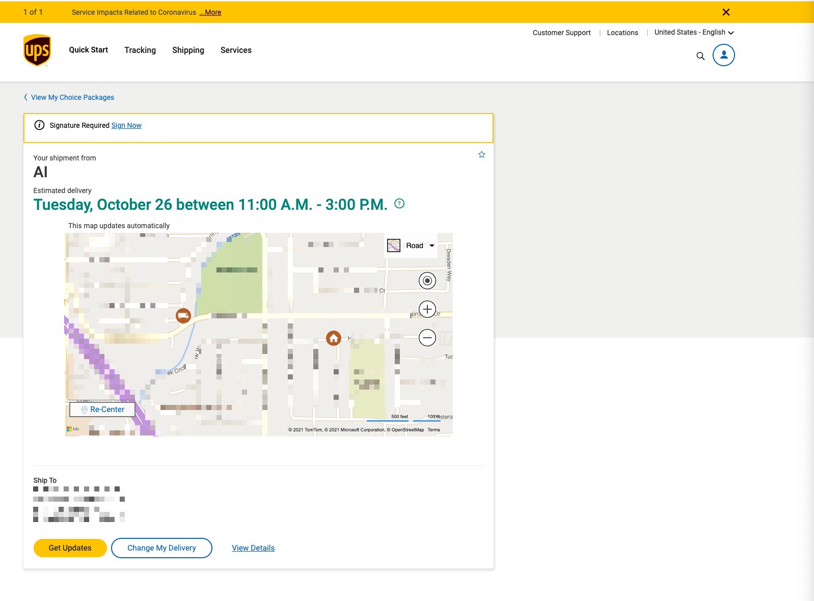 I haven’t see “follow my delivery’” on any of my recent UPS deliveries.Is the UPS My Choice feature "follow my delivery" working for anyone today? Usually I can sign in to ups.com and see where the driver with my package is on a map. But for my new MBP today, the only details I can find is "out for delivery."