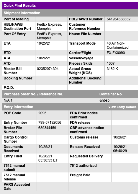 If you click through to view the clearance and input the master tracking into the HBL search you can get more details.