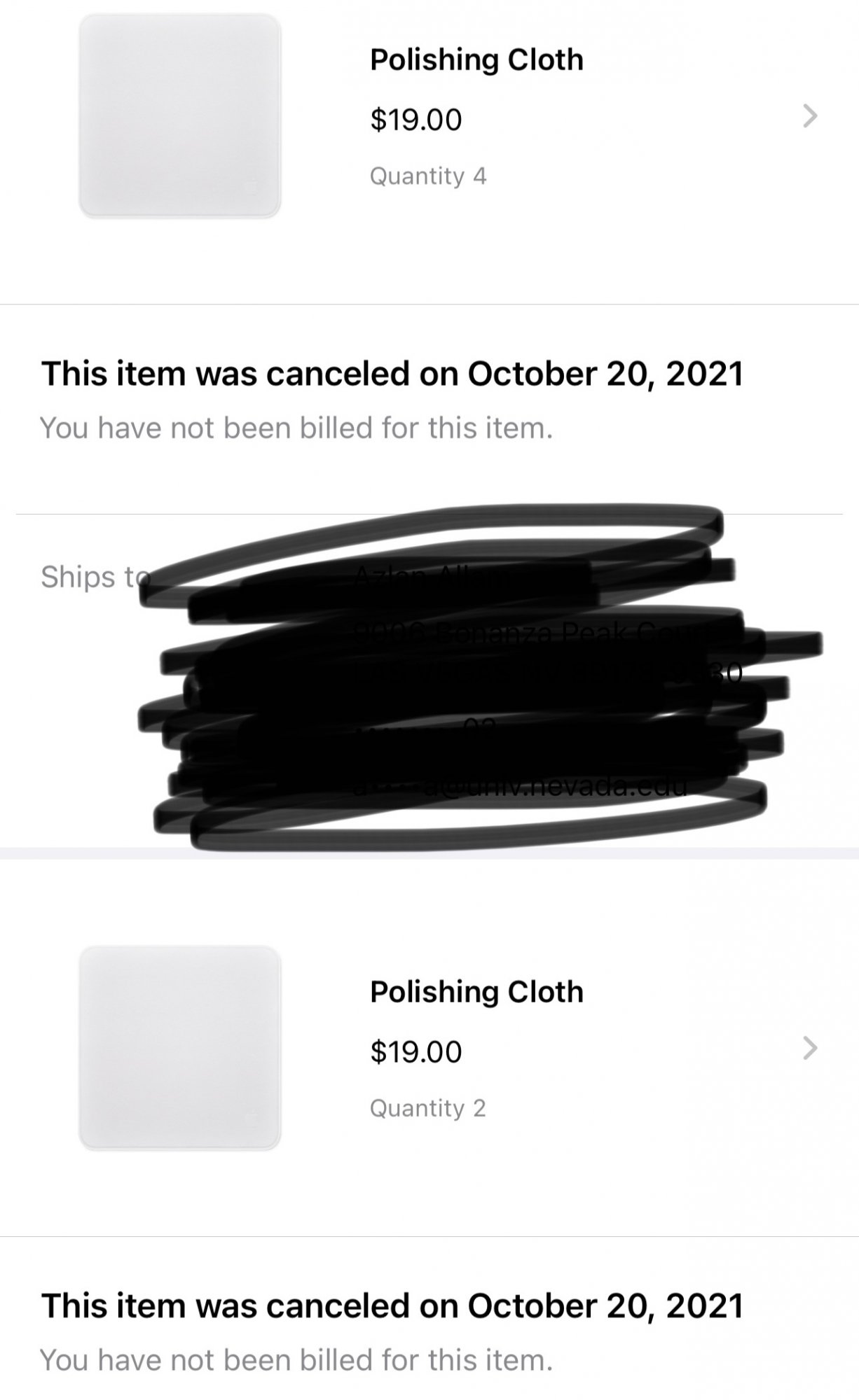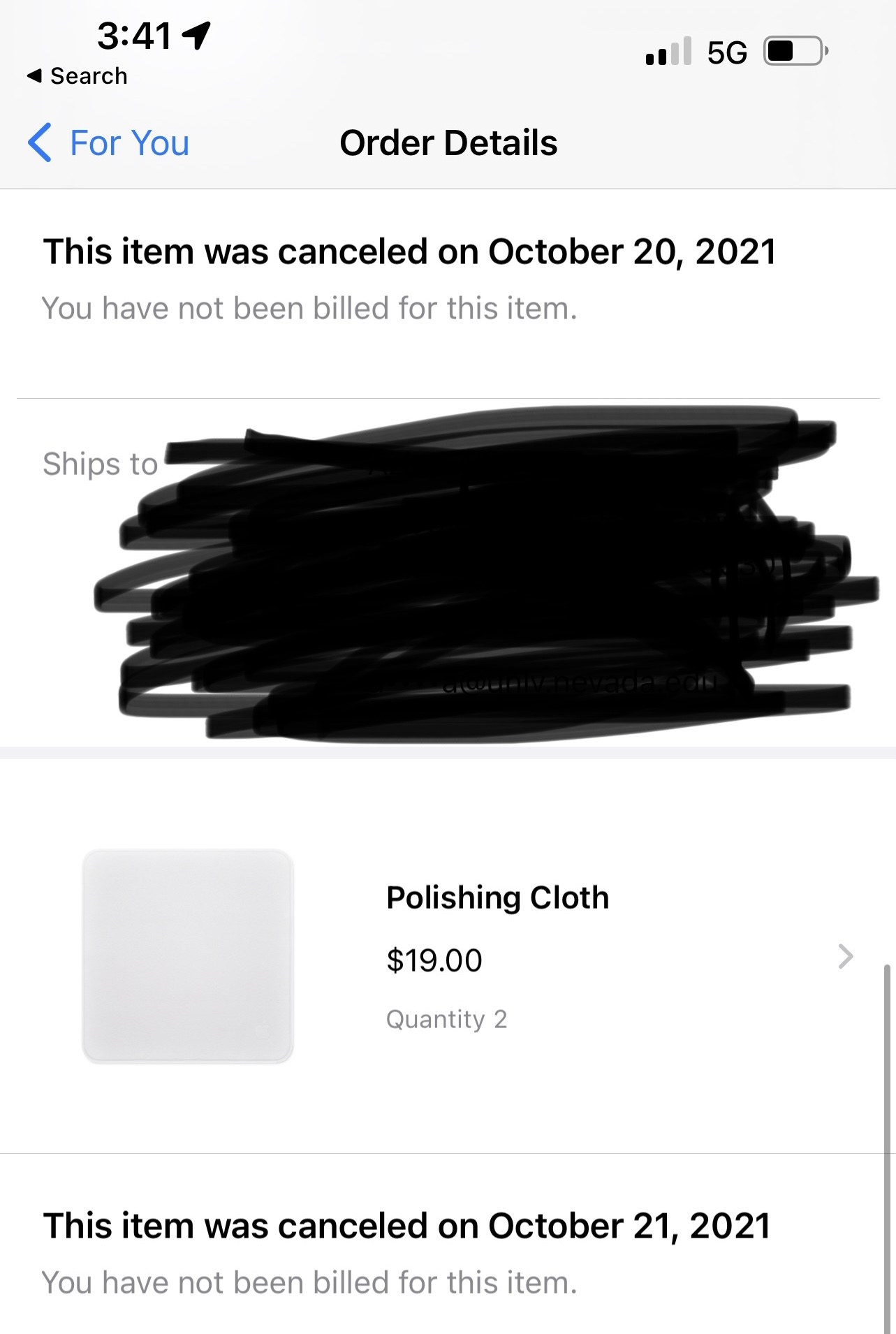 So did you get all the cloths you ordered? So they never cancelled any?You got it! Apple store employees didn’t even know what an Apple Polishing cloth was? They said: We have it? I was like yes! You also cancelled my order 😂 because I may have bought it over the limit.