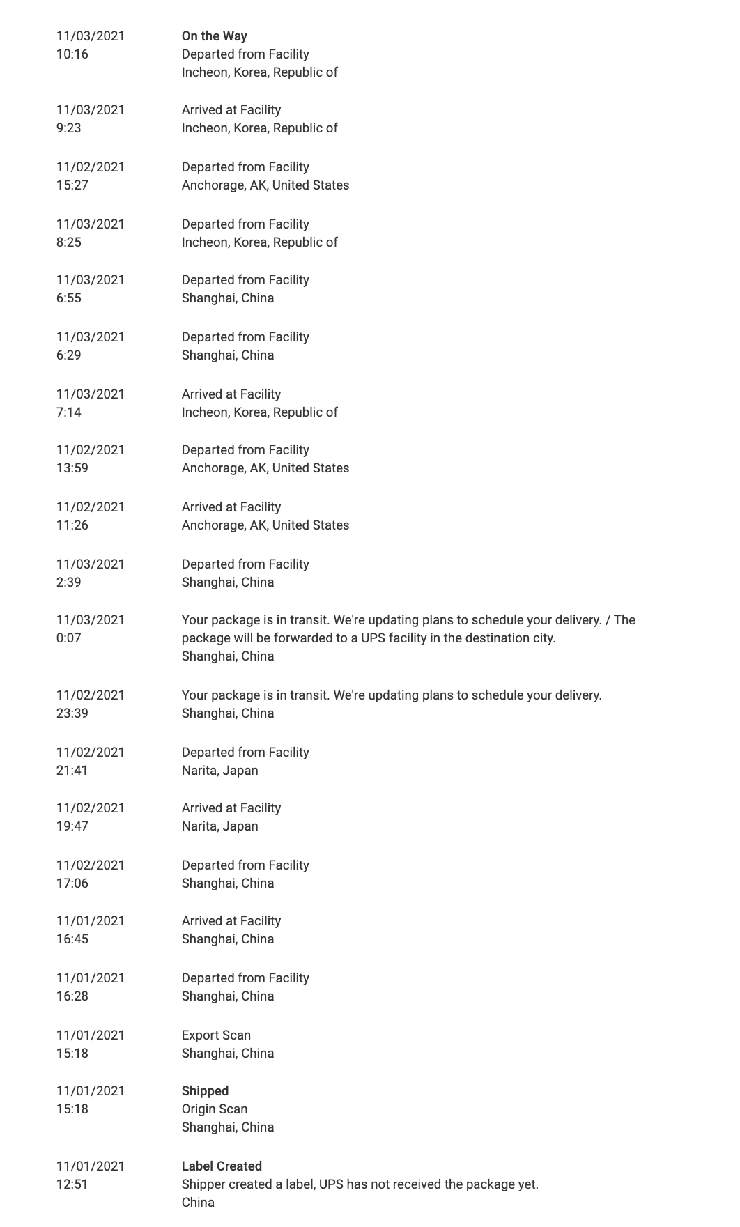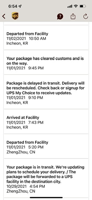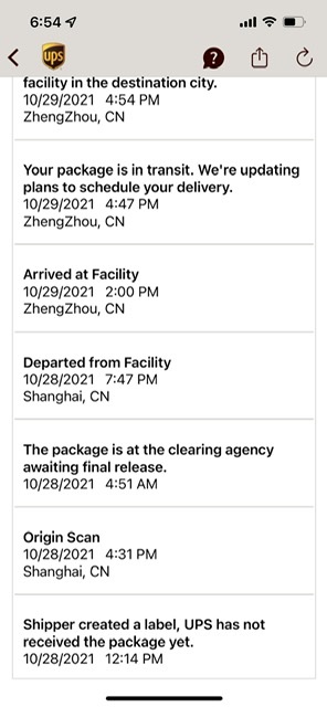 6 days so far and counting in ZhengZhou, China and back to a constant "check back tomorrow for an updated delivery date" which hasn't actually updated in several days now.