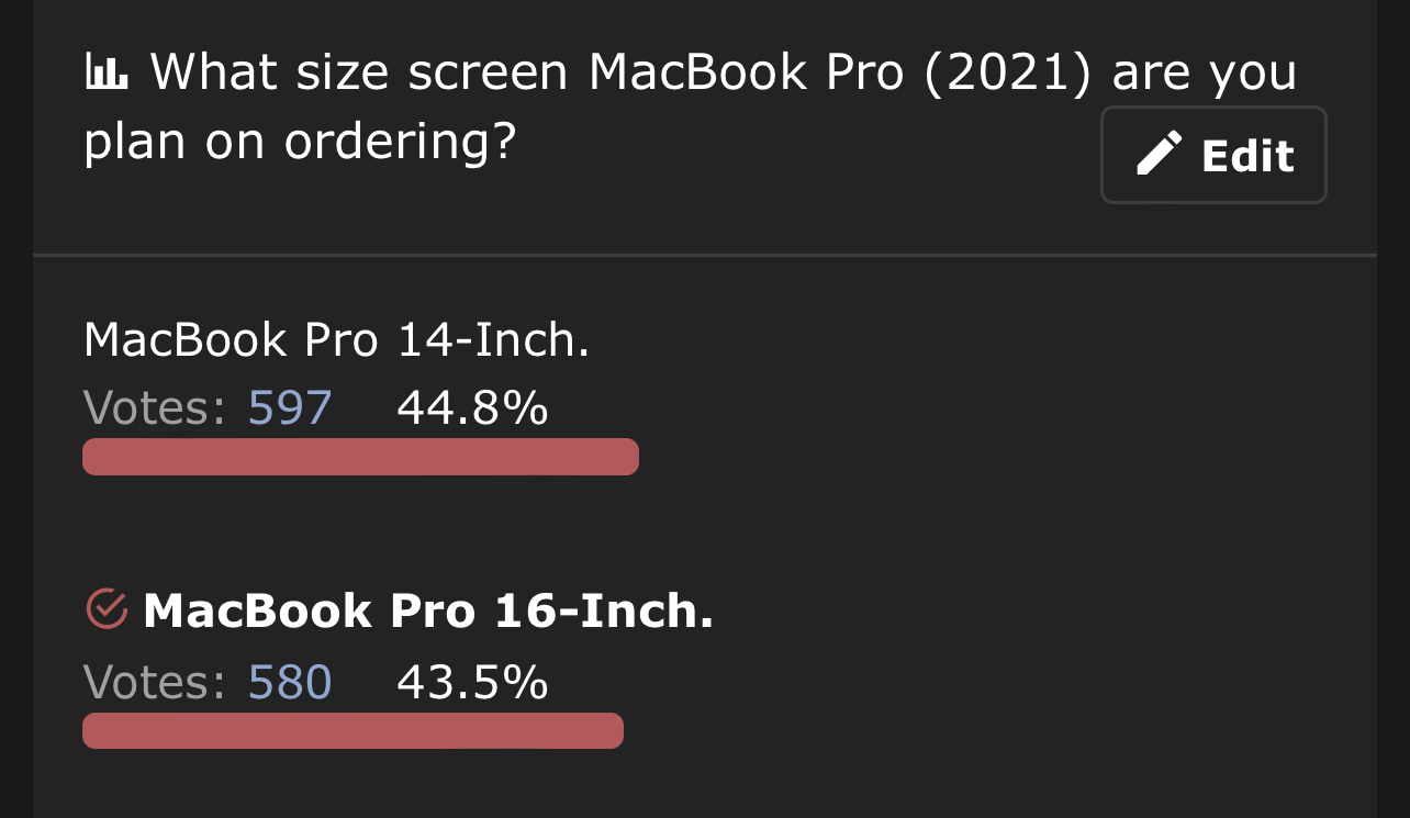 This makes me want to keep both of them if anything lolThere is a possibility @LasersGoPewPew is eyeing in this poll. Maybe the votes will help her decide? It also looks like MacBook Pro 16” is catching up with the MacBook Pro 14”?