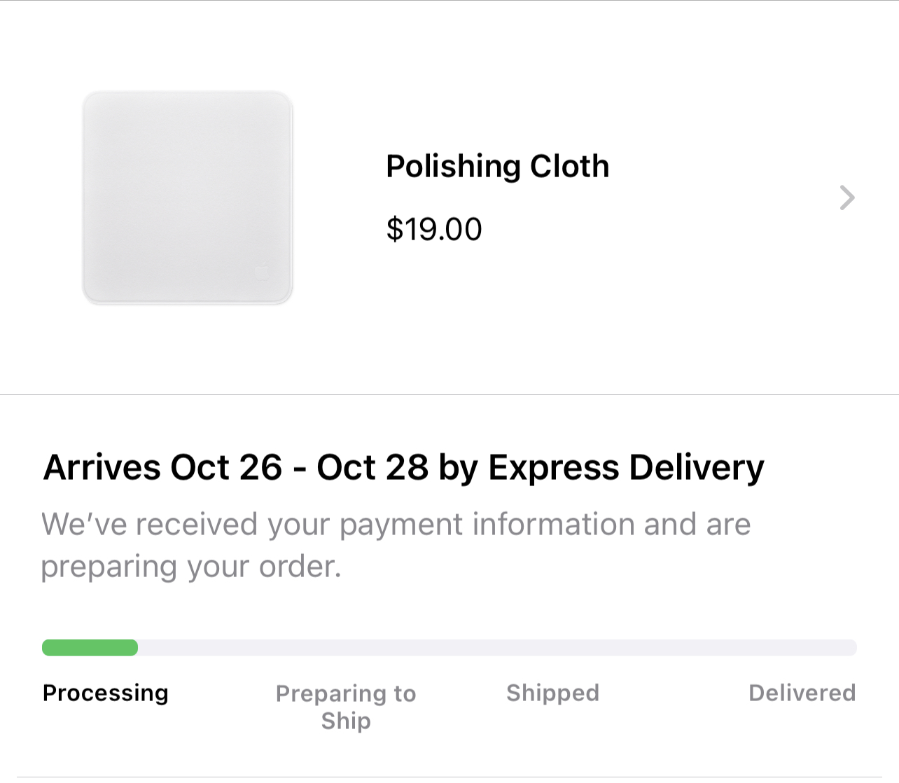 Delivery date Oct 26th.