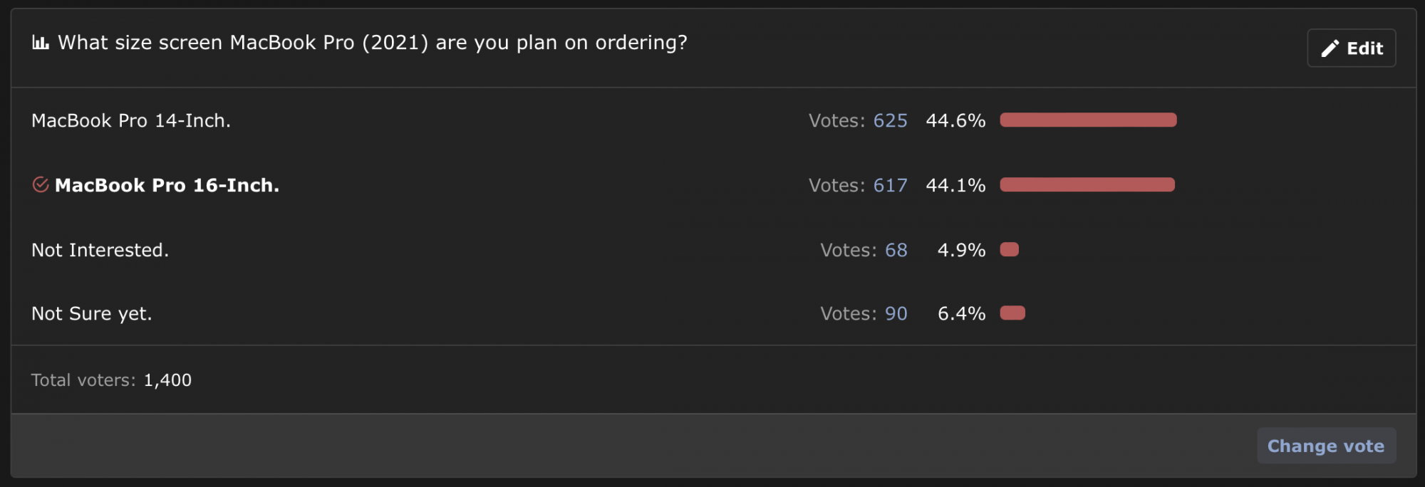 That's a very good suggestion. Submitted to the ModsWould be good to recalibrate the poll to "What size screen .... did you order?" We're well into the order cycle now.