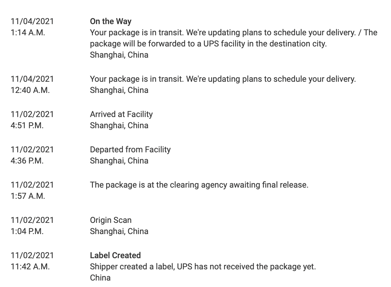 12:47 P.M. | Your package has cleared customs and is on the way. |