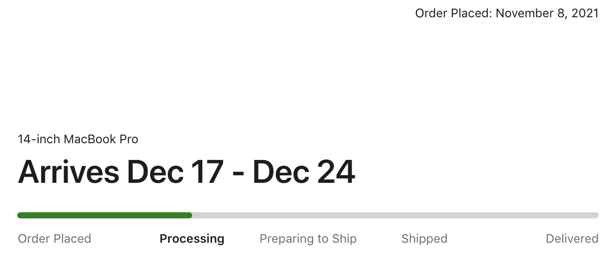 That is the exact configuration I ordered on 10/20 & it is still "processing". If I were you I would call Apple immediately.No idea what happened to my order. The arrives by window has been Nov. 6-19 since the beginning as I placed the order 15 minutes after the Keynote. There are three 16" MBP on this order. A 16" Max/64/2TB shipped a couple of days ago, and last night I got an email about the other two 16" Max/64/1TB.