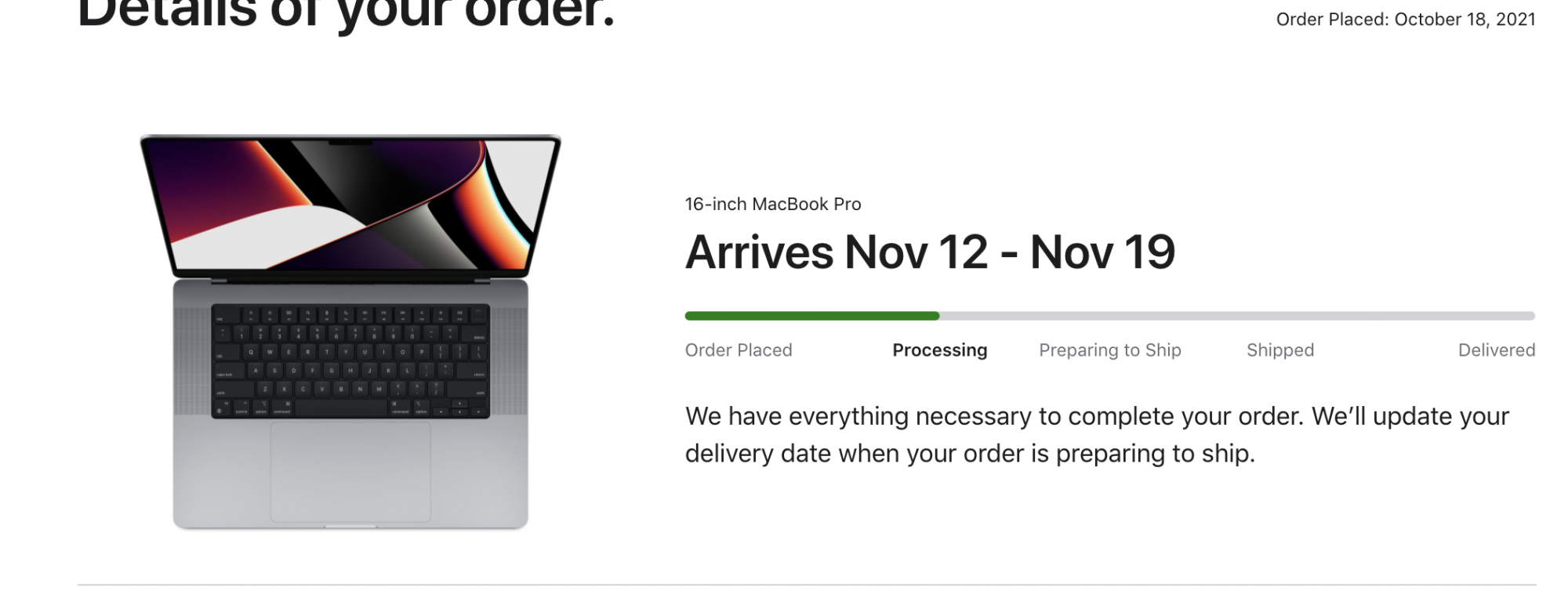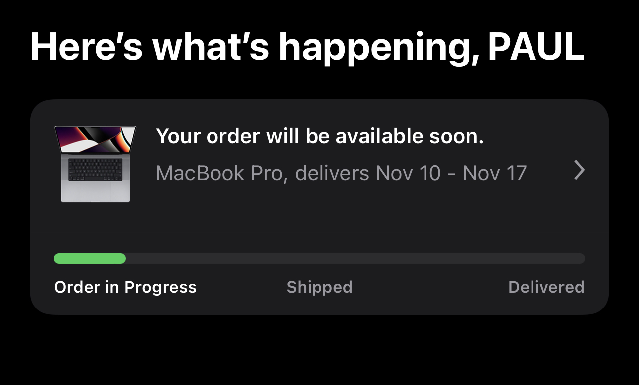 OK, <30 minutes ago, I posted that my MBP16.2 M1Max 64GB and 4TB was into the Nov 10 - Nov 17 window and not gonna be the 10th or 11th.