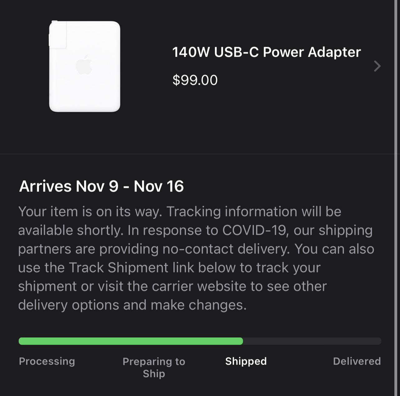 Anyhow, after that drama. I got to this on the Apple.com orders page.
